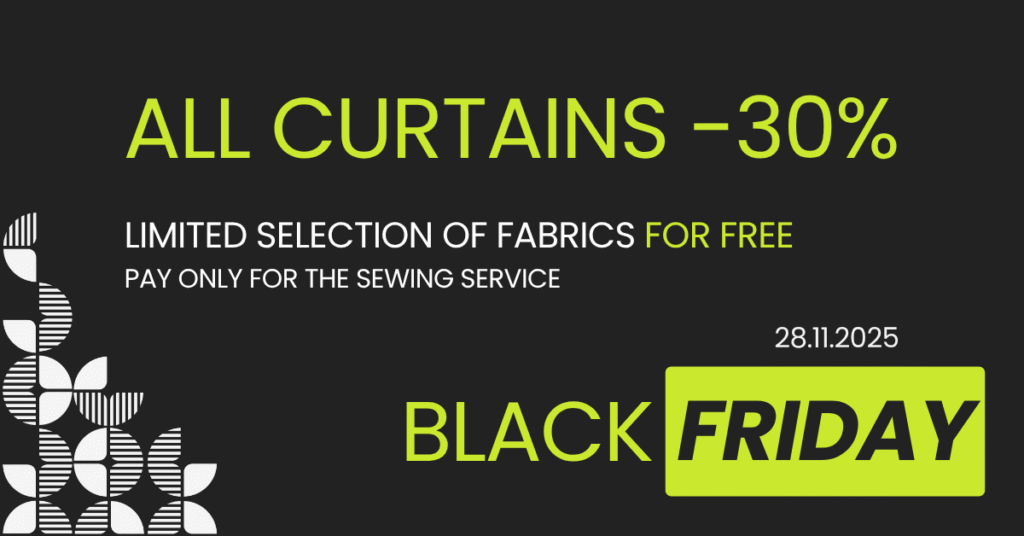 Important: We recommend preparing in advance (measure your windows, choose fabric colors, etc.), because to get the discount, your order must be confirmed by the evening of November 28!