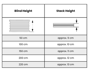 Size Range for Honeycomb MAXLINE pleated blinds: