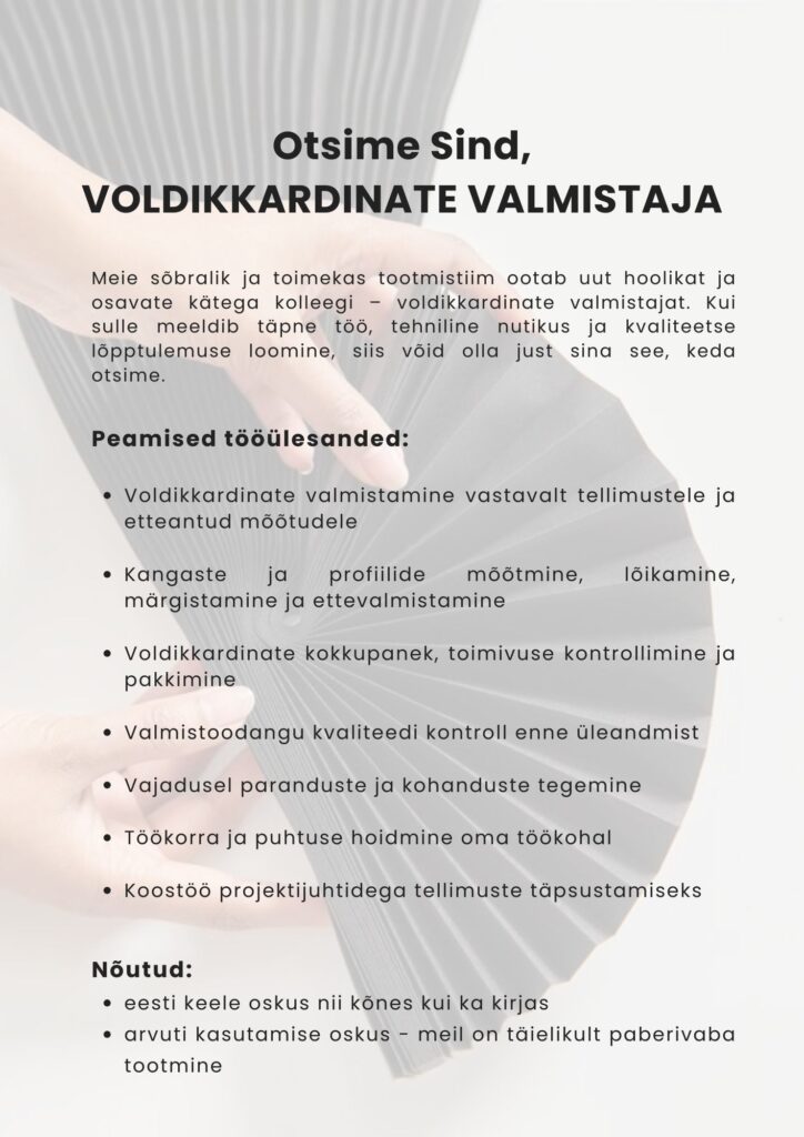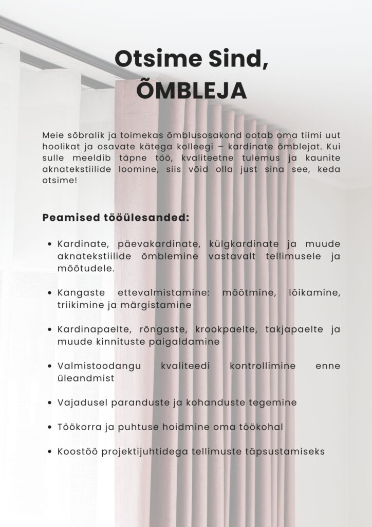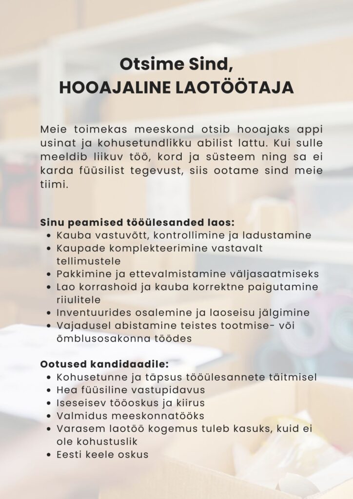 Pakume tööd perioodiks: KOHE kuni 01.09.2026