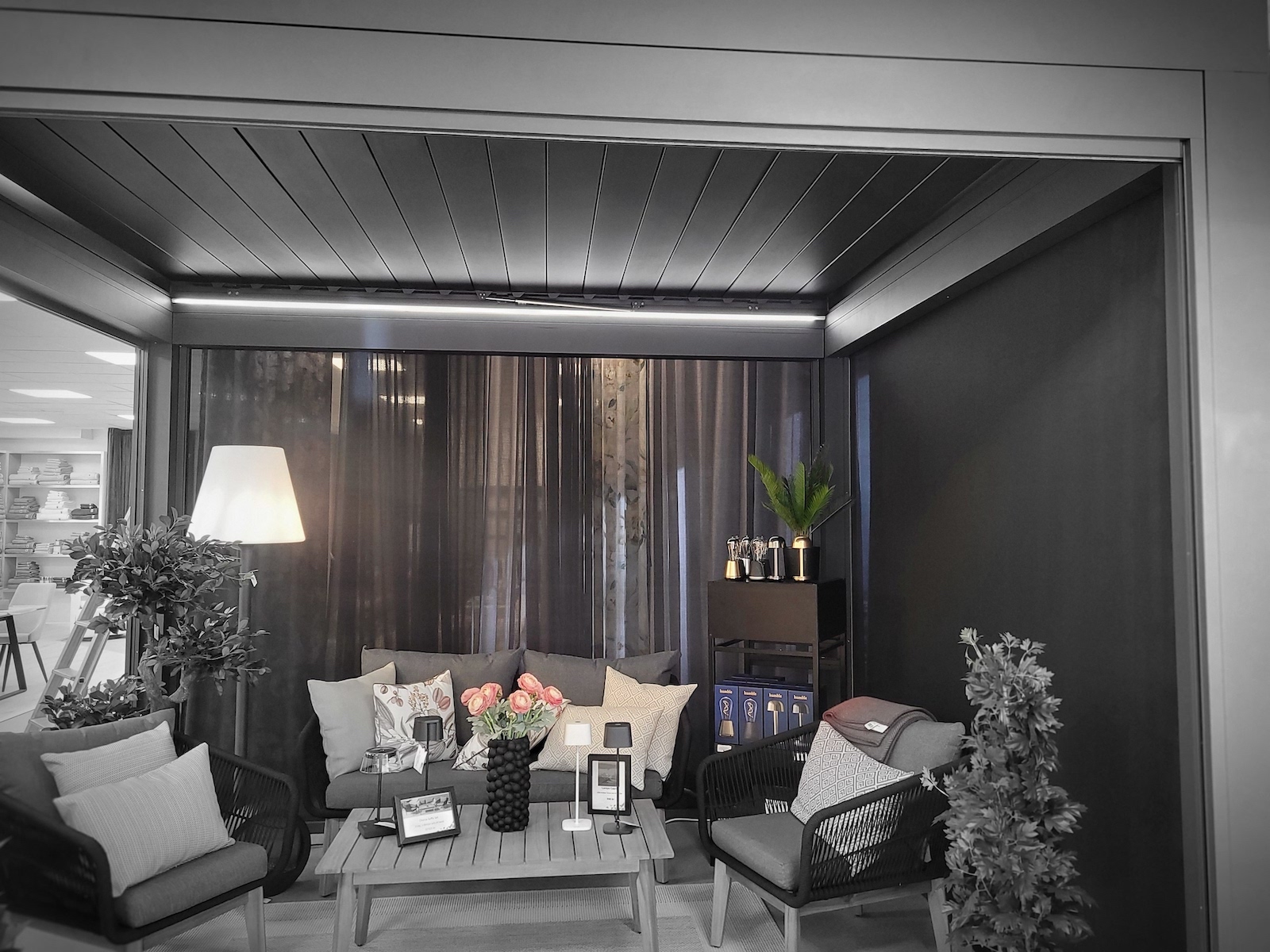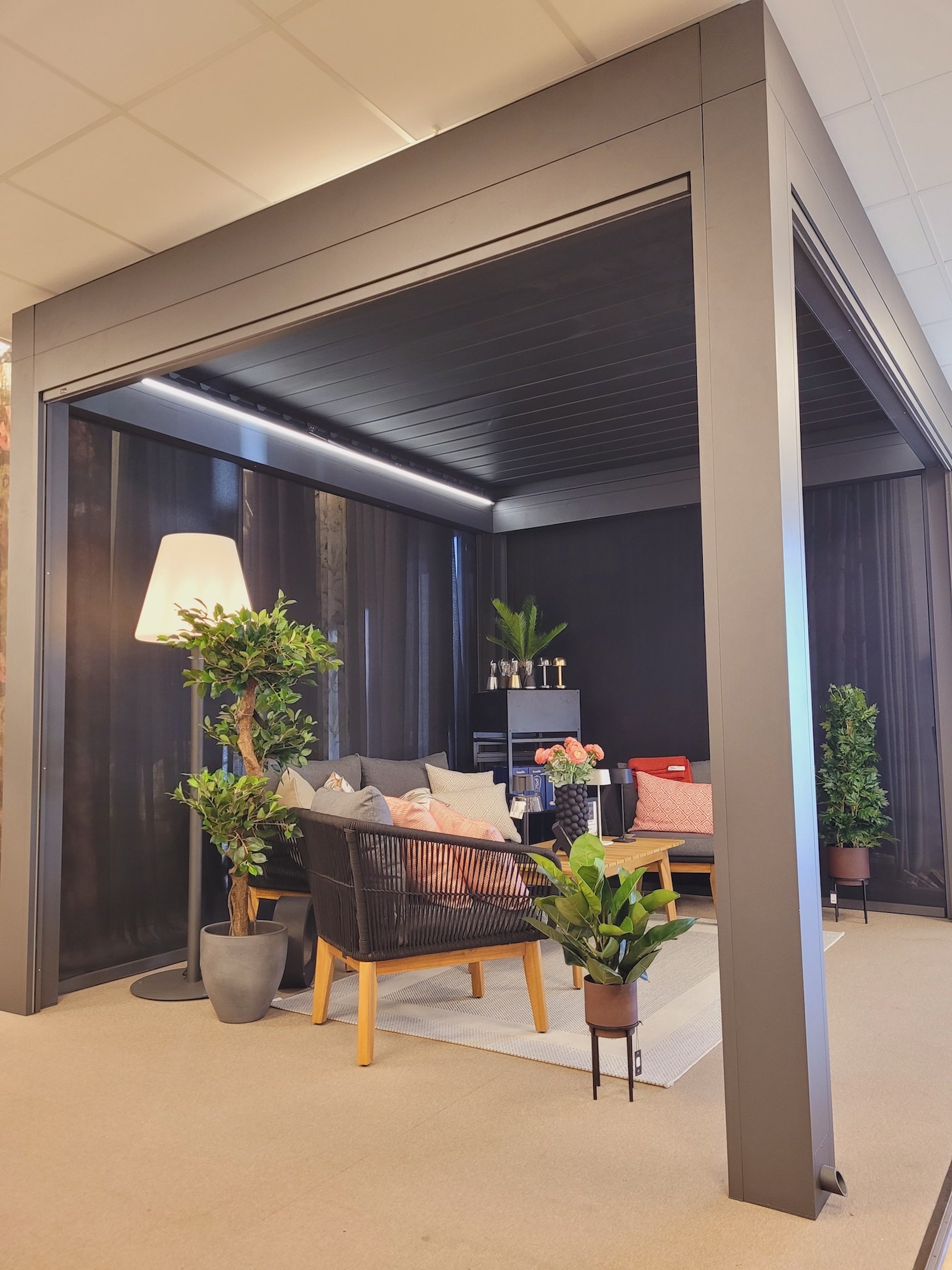 - Automaatne juhtimine – katuseliistud on puldist juhitavad, võimaldades reguleerida varju vastavalt ilmastikuoludele