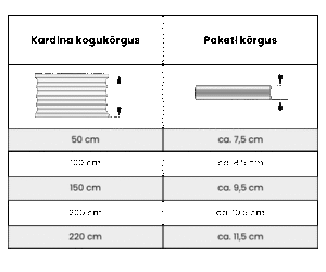 *Laiuse puhul kuni 150 cm: maksimaalne kõrgus 220 cm
