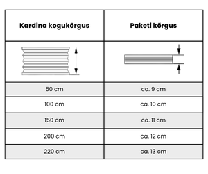 *Laiuse puhul kuni 150 cm: maksimaalne kõrgus 220 cm