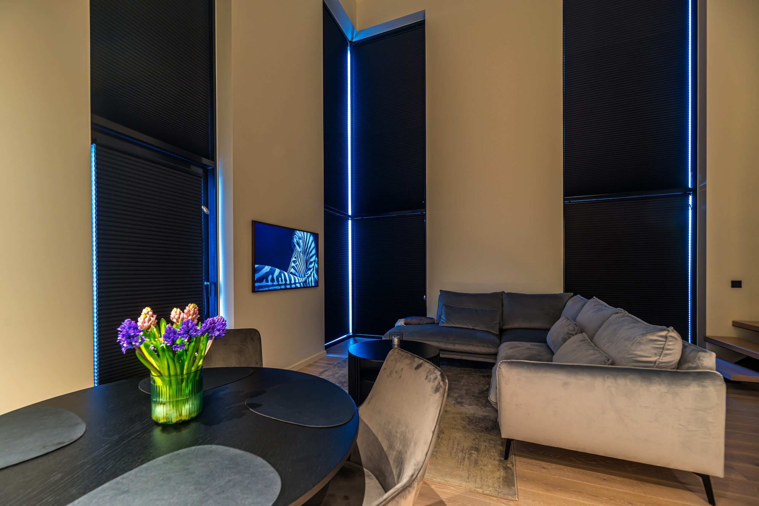 - Tõhus alternatiiv ruloole – puudub vahe kanga ja mehhanismi vahel, tänu millele on parem pimenduse efekt. Voldikkardin pakub ruloole sarnast funktsionaalsust, kuid on elegantsema ja pehmema välimusega.