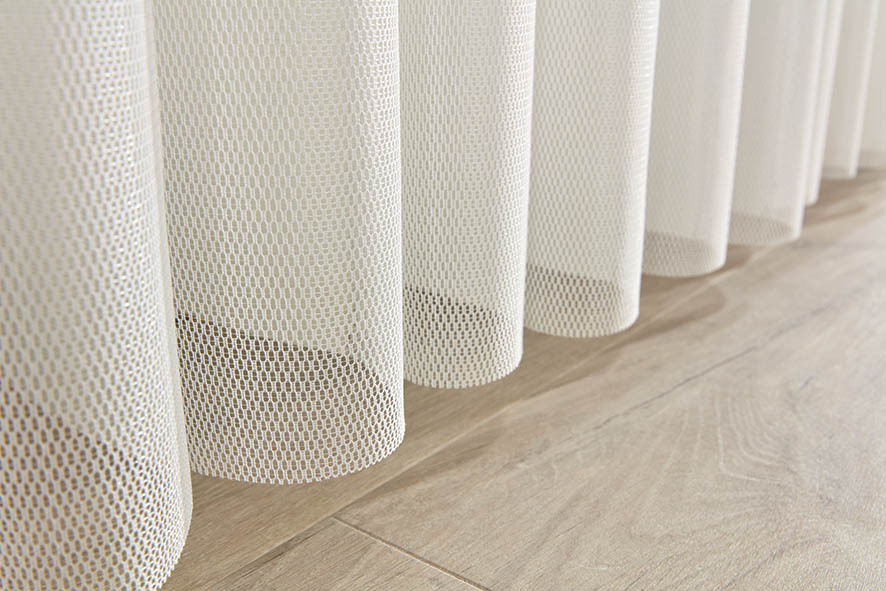 - HORIZON – konkreetsema ja tugevama võrgustruktuuriga kangas, mis loob selge ja geomeetrilise visuaali.