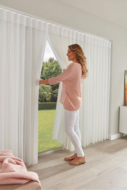 Tänu nutikale konstruktsioonile saab kardina vahelt mugavalt läbi liikuda, säilitades samal ajal ruumi atmosfääri ja valguslahenduse.