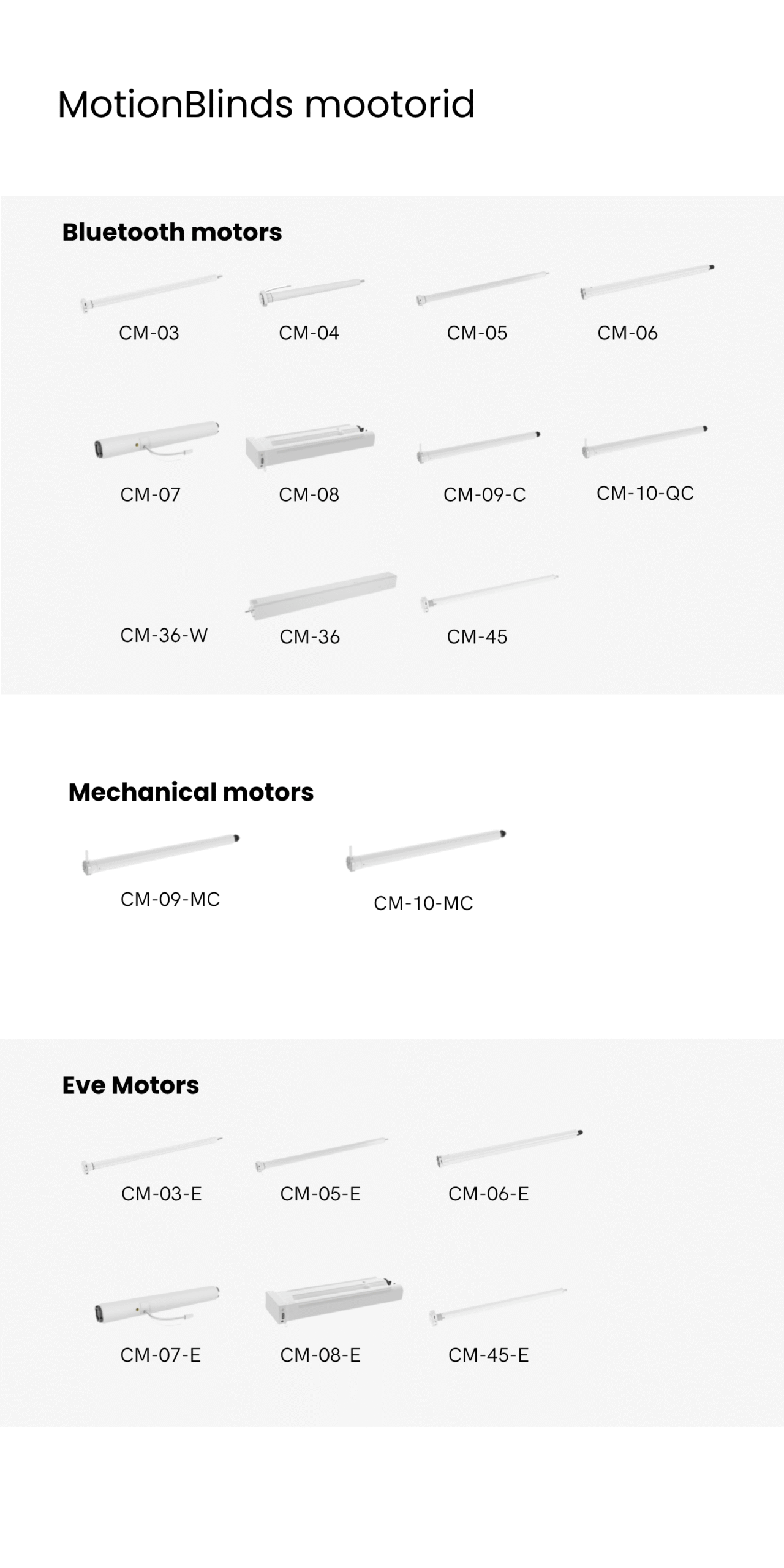 MotionBlinds on uuenduslik kardinamootorite süsteem, mis võimaldab juhtida kardinaid nutitelefoni, häälkäskluste või automaatika abil. Tänu Matteri ja Thread-tehnoloogiale või Bluetoothile on paigaldus lihtne ning kasutamine mugav. MotionBlinds sobib nii kodudesse kui ka äripindadele, pakkudes mugavust, turvalisust ja energiasäästu.