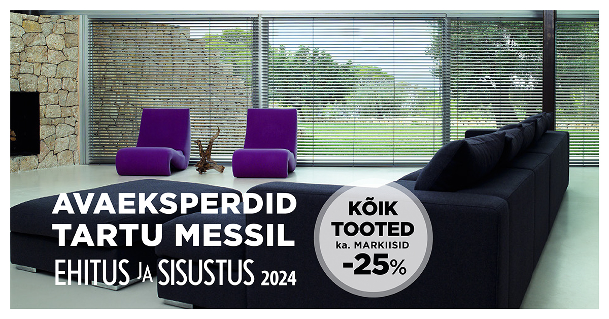 Olgu Sul soov värskendada interjööri uute kardinatega või tahad majale juba järgmiseks välihooajaks pergola näol mõnusa istumisnurga lisada – need ja kõik teisedki Avaekspertide tooted on messilt tellides 25% soodsamad. Soodustus kehtib ka messi ajal meie salongides Tallinnas Pärnu mnt 139a ja Kadaka tee 133 esitatud tellimustele.
