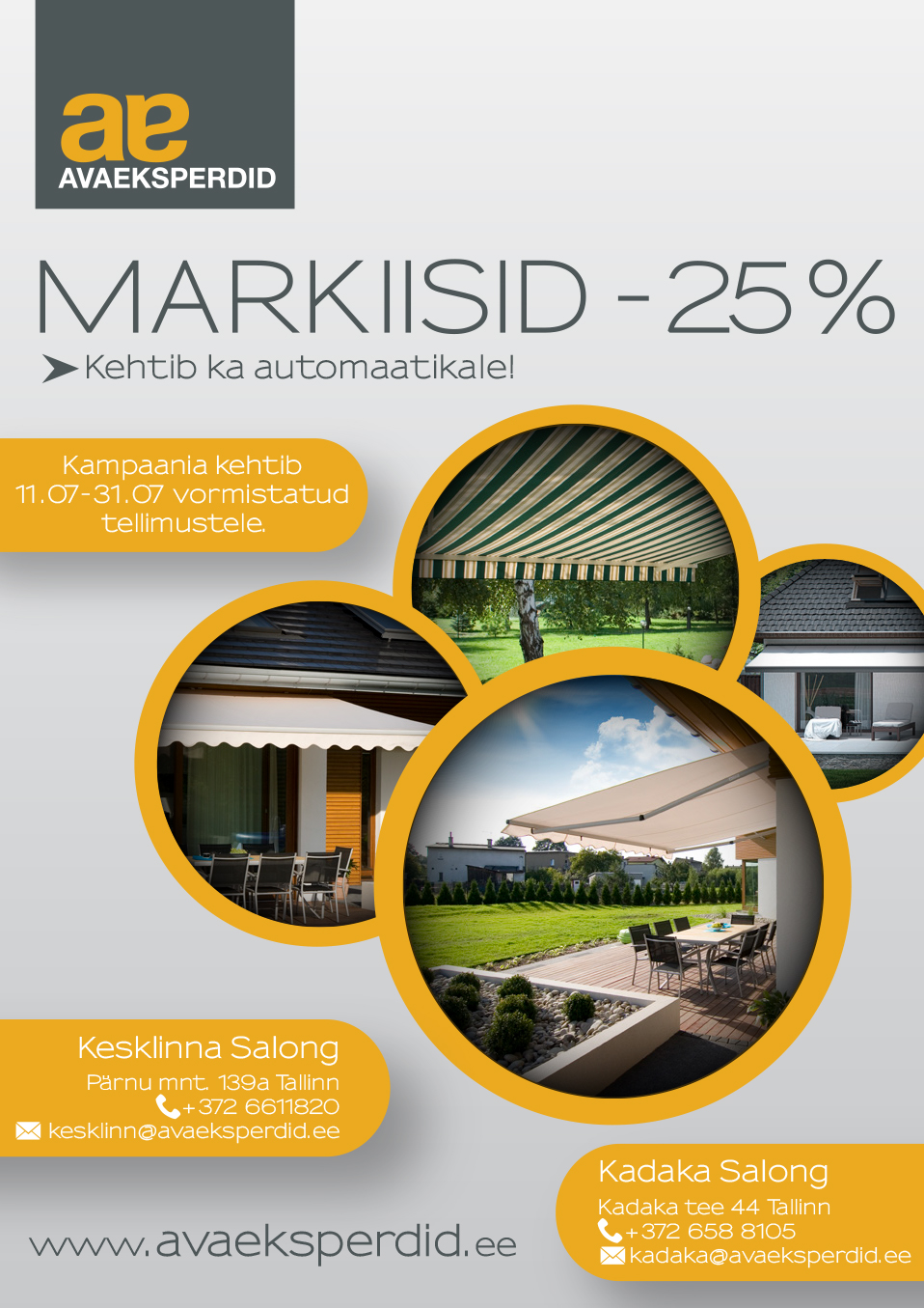 Nüüd on õige aeg tellida markiisid. Juulis vormistatud tellimustele soodustus 25%.