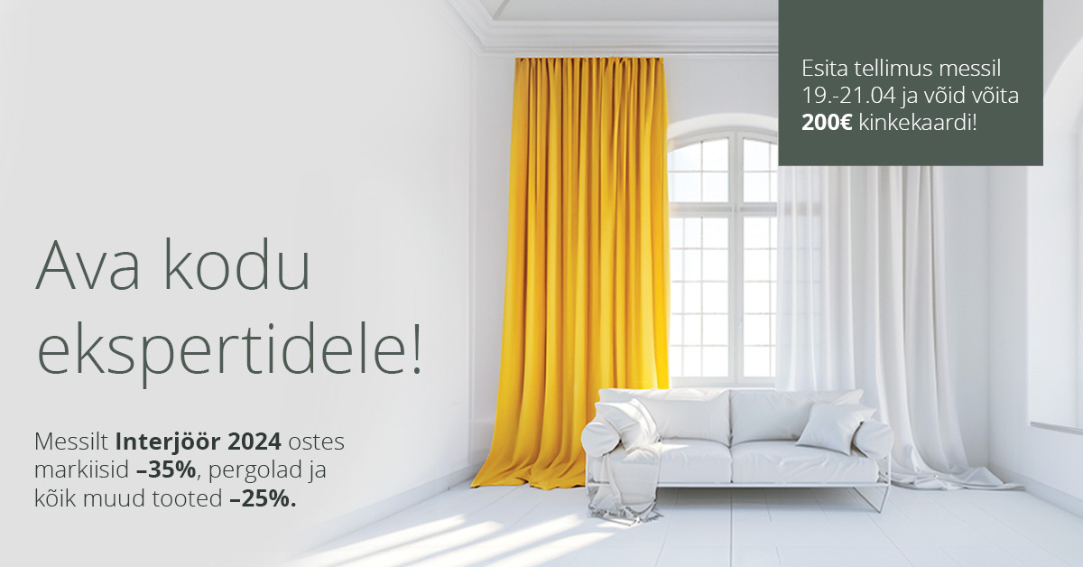 Lase meie kogenud nõustajatel ja meistritel endale näidata, kui võrratu näeb Sinu kodu välja uhiuute kardinatega või tuule, vihma ja liigse päikese eest kaitstud terrassiga! Hea võimaluse saada väärt nõu ja kohe ka suurepäraseid soodustusi pakub sisustusmess Interjöör 2024, kus oleme nagu alati kohal meiegi.